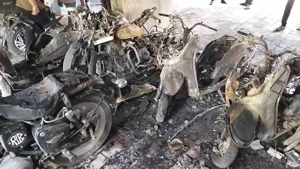 न्यायधानी के तोरवा क्षेत्र के वैशाली रीजेंसी अपार्टमेंट की पार्किंग में खड़ी गाड़ियों में रविवार और सोमवार की दरमियानी रात भीषण आग लग गई. घटना में 10 बाइक पूरी तरह जलकर राख हो गईं. वहीं आग की चपेट में एक कार भी आई, जिसका एक हिस्सा बुरी तरह क्षतिग्रस्त हो गया. घटना की जानकारी होने पर अपार्टमेंट में रहने वाले लोगों ने पानी डालकर आग बुझाने की कोशिश की. वहीं घटना की सूचना तौर पर पुलिस में फायर ब्रिगेड को दी गई.