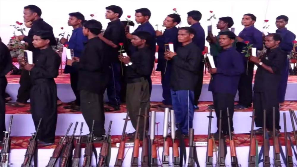 बता दें कि भारत सरकार ने साल 2026 में देश से नक्सलवाद को खत्म करने का लक्ष्य रखा है। इस दौरान पिछले कुछ महीनों सैकड़ों नक्सलियों को एनकाउंटर में ढेर कर दिया गया और इस दौरान हजारों नक्सलियों ने सरेंडर भी किया है। सरेंडर करने की इसी कड़ी में बुधवार को 106 नक्सलियों ने सुरक्षाबलों के सामने सरेंडर कर दिया।