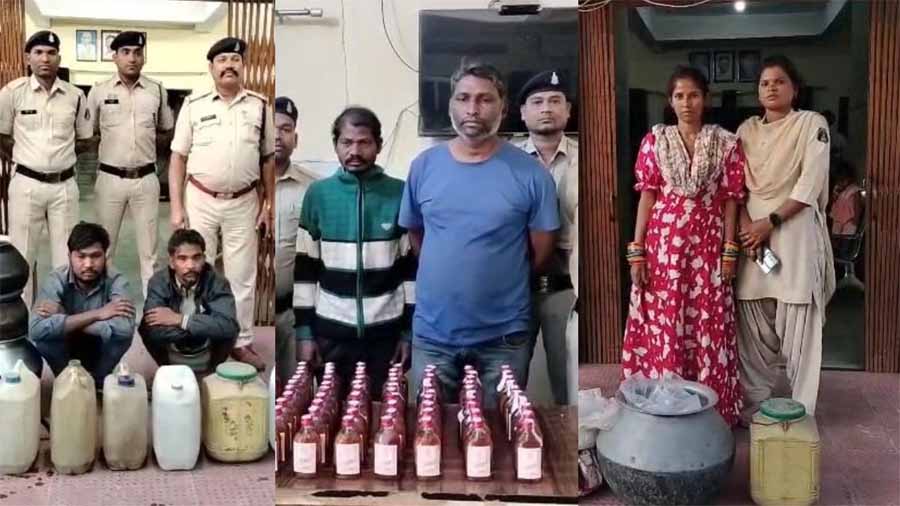 113 लीटर महुआ और 100 पाव अंग्रेजी शराब बरामद, एक महिला समेत 6 आरोपी गिरफ्तार