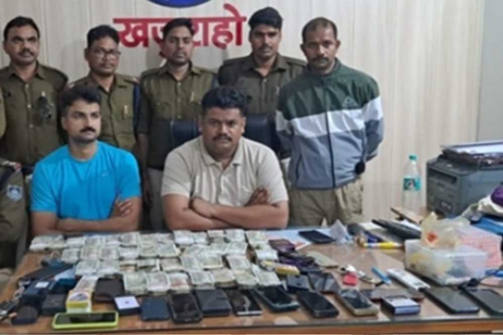पुलिस द्वारा समस्त थाना क्षेत्र अंतर्गत जुआ एवं सट्टा के विरुद्ध निरंतर कार्यवाही की जा रही है।रात्रि में खजुराहो के एक होटल में जुंवे के संचालन होने की सूचना प्राप्त हुई। अनुभाग नौगांव व खजुराहो से संयुक्त पुलिस टीम गठित की गई। राजपत्रित पुलिस अधिकारी के नेतृत्व में पुलिस टीम ने भेष बदलकर खजुराहो के सारांश होटल में विधिवत भ्रमण किया, होटल के हॉल में जुआ चल रहा था, पुलिस बल द्वारा घेराव कर सभी जुआरियों को पकड़ा गया। जुआ के फड़ व हार जीत का दाव लगाकर खेल रहे जुंवारियो के पास से 20 लाख रुपए नगद राशि एवं ताश की गड्डियां बरामद की गई।