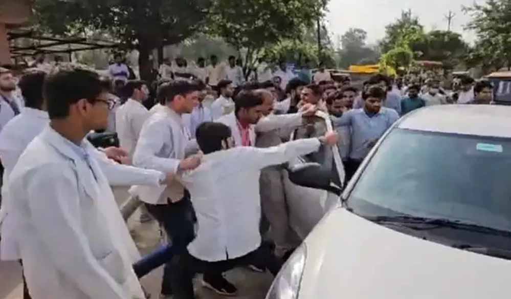 कार्रवाई की मांग को लेकर सभी जूनियर 250 डॉक्टरों ने सामूहिक इस्तीफा देकर धरने पर बैठ गए। धरने के दौरान मेडिकल कॉलेज में एक तीमारदार अपने मरीज लेकर पहुंचा। उपचार न मिलने पर गुस्सा जाहिर करते हुए डॉक्टरों को अभद्र भाषा का प्रयोग करने लगा। इतना सुनते डॉक्टर भड़क गए और उन्होंने पुलिस के सामने ही तीमारदार की पिटाई करते हुए गाड़ी में भी तोड़फोड़ कर दी।