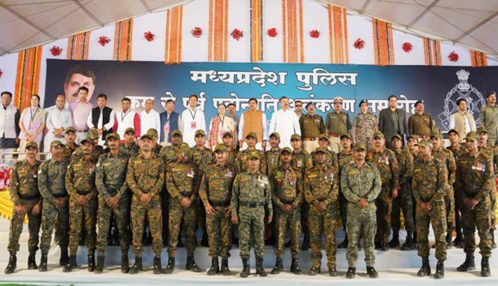 मध्य प्रदेश के मुख्यमंत्री मोहन यादव ने सोमवार को बालाघाट में आयोजित एक कार्यक्रम में नक्सली मुठभेड़ों में अदम्य साहस और वीरता का प्रदर्शन करने वाले 60 जवानों को नियमों से हटकर पदोन्नति प्रदान की। एक आधिकारिक विज्ञप्ति के अनुसार, मुख्यमंत्री ने राज्य की शांति और सुरक्षा के लिए प्राणों की आहुति देने वाले जवानों को अमर जवान ज्योति पर पुष्पांजलि अर्पित कर श्रद्धांजलि दी।