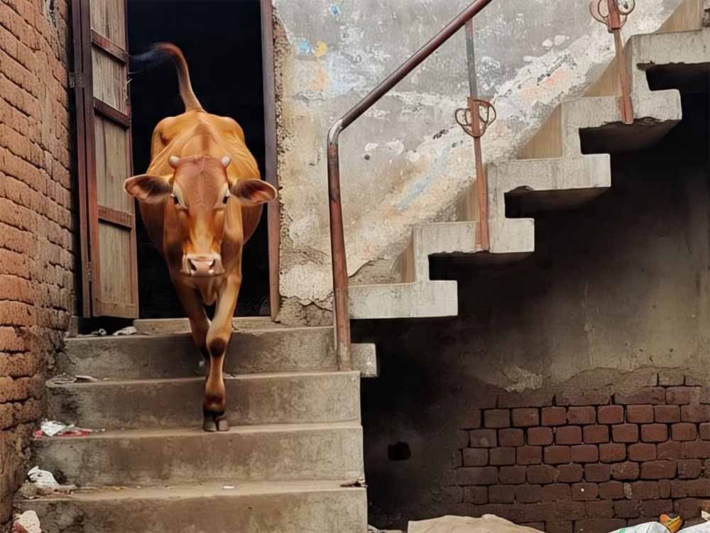 महाराष्ट्र में पुणे की पारंपरिक इमारत ‘वाड़ा’ के लोगों की नींद शुक्रवार सुबह उस समय शोरगुल से खुल गई, जब आवारा कुत्तों से बचने के लिए एक गाय इमारत की तीसरी मंजिल पर चढ़ गई। दमकल विभाग के अधिकारी ने यह जानकारी दी। उन्होंने बताया कि यह घटना रविवार पेठ इलाके के परदेसी वाड़ा में सुबह करीब 6 बजे की है। दमकल विभाग के अधिकारी ने कहा, ‘आवारा कुत्तों के पीछा किए जाने पर एक जर्सी गाय इमारत के परिसर में घुस गई। वह एक संकरी लकड़ी की सीढ़ी से तीसरी मंजिल पर चढ़ गई।’
