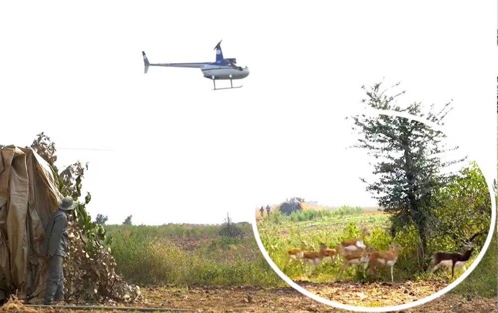 दक्षिण अफ्रीका की एक लोकप्रिय विधि है, जिसमें जानवरों को हेलीकॉप्टर का उपयोग करके झुंड में एक बाड़े (पेन) में खदेड़कर पकड़ा जाता है. इस पहल का उद्देश्य जिले में जंगली जानवरों (नीलगाय और कृष्णमृग) द्वारा फसलों को नुकसान पहुंचाने की लंबे समय से चली आ रही समस्या का समाधान करना है.