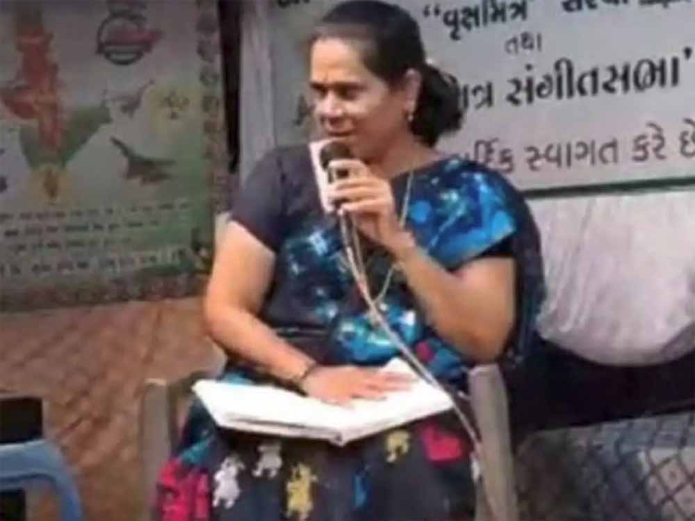 मृतक महिला का नाम आरती बेन राठौड़ बताया जा रहा है। वह देशभक्ति गीत प्रस्तुत कर रही थीं। इस घटना का वीडियो भी सोशल मीडिया पर वायरल हो रहा है, जो कार्यक्रम में मौजूद लोगों द्वारा रिकॉर्ड किया गया था।