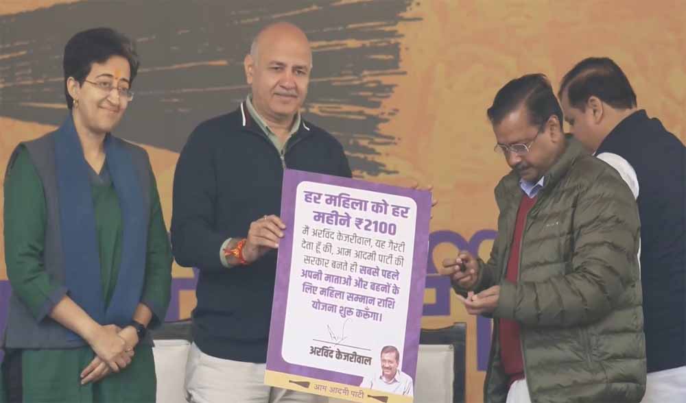 केजरीवाल ने वादा किया कि हर महिला को हर महीने 2100 रुपए दिए जाएंगे। सरकार बनने के बाद जल्द से जल्द योजना लागू की जाएगी।