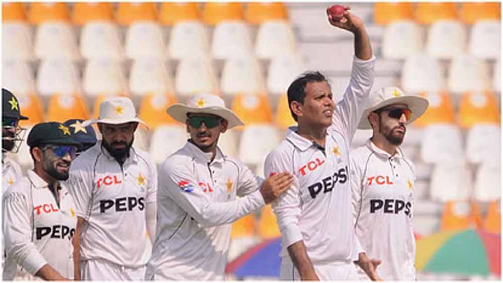 आज सुबह के सत्र में एन अली ने जो रूट (18) को आउट इंग्लैंड को चौथा झटका दिया। इसके बाद 20वें ओवर में अली ने हैरी ब्रूक (16) को भी पवेलियन भेज दिया। जेम्स स्मिथ (6), कप्तान बेन स्टोक्स (37), बाइडन कार्स (27), जैक लीच (एक) और शोएब बशीर (शून्य) को भी एन अली ने अपना शिकार बनाया। पाकिस्तान ने इंग्लैंड की पूरी टीम को 33.3 ओवर में 144 रन पर समेट दिया। पाकिस्तान की ओर से नोमान अली ने 16.3 ओवर में 46 रन देकर आठ विकेट लिये। साजिद खान को दो विकेट मिले।