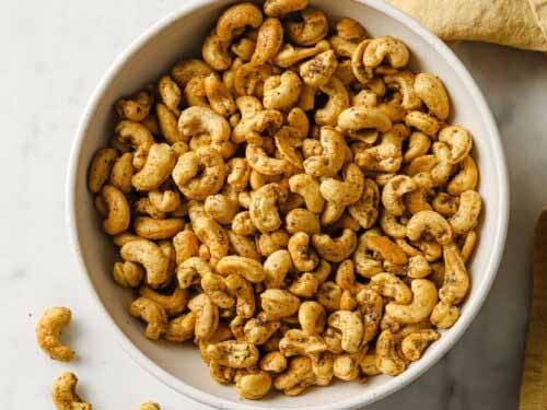 बस तैयार हैं आपके बेक्ड मसाला काजू। गर्मागर्म चाय के साथ इनका मजा लें।