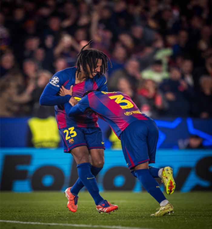 बार्सिलोना ने जूल्स कोंडे के हेडर से लगाए दो गोल की मदद से आइंट्राच्ट फ्रैंकफर्ट को 2-1 से हराकर चैंपियंस लीग में अहम जीत हासिल की। जीत के साथ बार्सिलोना 36 टीमों के लीग फेज में 13वें नंबर पर आ गया है। शीर्ष 8 में जगह बनाने के लिए बार्सिलोना को दो और मैचों में जीत हासिल करनी होगी। एटलेटिको मैड्रिड ने एक गोल से पिछड़ने के बाद वापसी करते हुए पीएसवी के खिलाफ 3-2 से जीत हासिल की। गुस टिल ने 10वें मिनट में मैच का पहला गोल किया। अलेक्जेंडर सोरलोथ ने 37वें मिनट में जूलियन अल्वारेज को बराबरी का गोल करने का मौका दिया। इससे पहले डेविड हैंको ने 52वें मिनट में मातेज कोवर के नाहुएल मोलिना के लॉन्ग-रेंज शॉट को बाहर धकेलने के बाद रिबाउंड पर गोल किया, और सोरलोथ ने चार मिनट बाद तीसरा गोल किया।