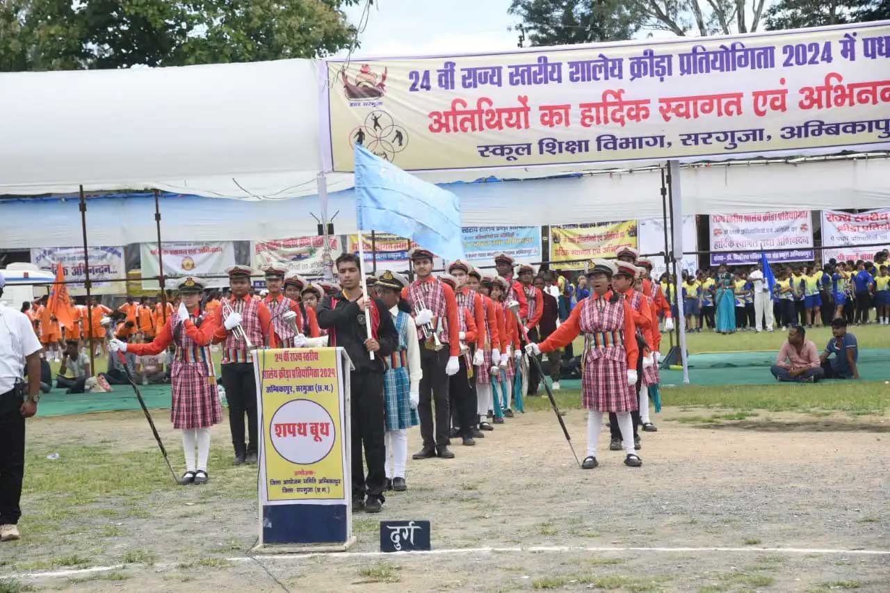 चार दिवसीय 24वीं राज्य स्तरीय शालेय क्रीड़ा प्रतियोगिता का शनिवार को पुलिस ग्राउंड में भव्य उद्घाटन हुआ। इस अवसर पर प्रमुख अतिथियों में बिलासपुर विधायक अमर अग्रवाल, तखतपुर विधायक धर्मजीत सिंह, बेलतरा विधायक सुशांत शुक्ला, और जिला पंचायत अध्यक्ष अरुण सिंह चौहान उपस्थित रहे।