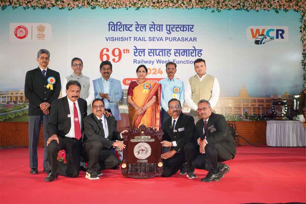 पश्चिम मध्य रेलवे के 69वें रेल सप्ताह समारोह के अंतर्गत महाप्रबंधक श्रीमती शोभना बंदोपाध्याय महोदया द्वारा विशिष्ट रेल सेवा पुरस्कार आवंटित किये गये| इस अवसर पर जबलपुर में आयोजित भव्य समारोह में रेल कर्मचारियों एवं भोपाल, जबलपुर और कोटा मंडल के विभिन्न विभागों को उनके उत्कृष्ट कार्यों के लिए पुरस्कृत किया गया। वित्तीय वर्ष 2023-24 के लिए भोपाल मंडल को कुल 6 दक्षता शील्ड प्राप्त हुई हैं, जो मंडल की उत्कृष्ट सेवाओं और प्रयासों को दर्शाती हैं।