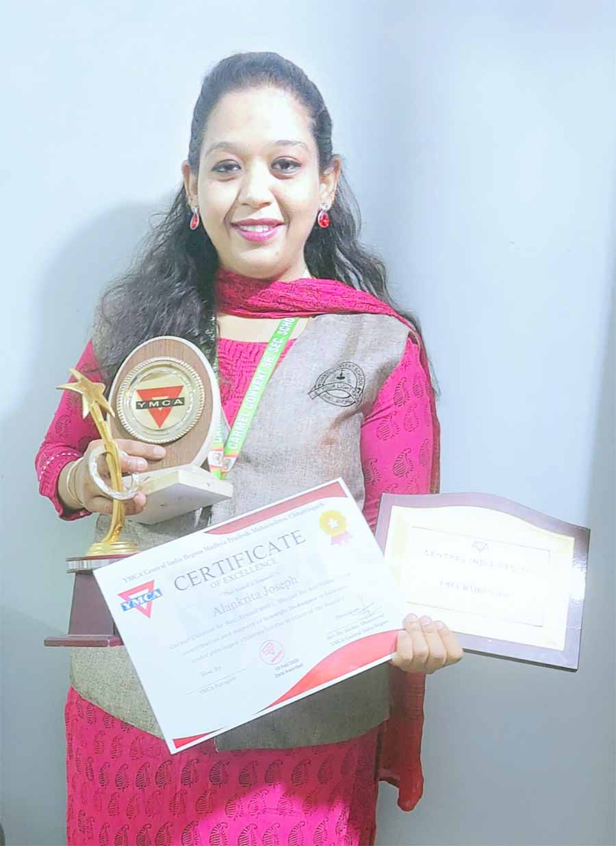 कार्मेल कॉन्वेंट बीएचईएल स्कूल की शिक्षिका अलंकृता जोसफ को वाईएमसीए सेंट्रल इंडिया रीजन द्वारा "एक्सीलेंस अवार्ड" से सम्मानित किया गया। उन्होंने वैज्ञानिक तकनीकों और प्रयोगों के माध्यम से वंचित बच्चों की शिक्षा में महत्वपूर्ण योगदान दिया है।