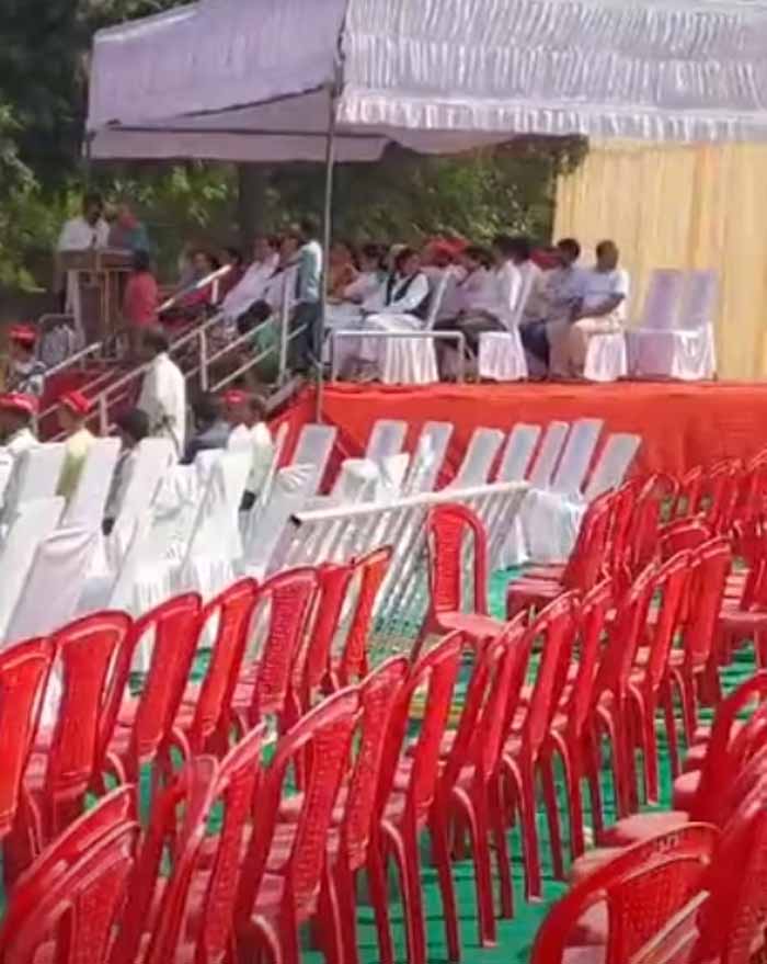 उपचुनाव के लिए कानपुर पहुंचे सपा प्रमुख अखिलेश यादव ने आज GIC ग्राउंड पर रैली की है। जिसमें भीड़ देखने को नहीं मिली। सभी कुर्सियां मैदान में खाली दिखाई दे रही थी। वहीं, मंच से सपा विधायक अमिताभ बाजपेई ने कहा कि पुलिस और पीएसी लोगों को सभा में आने से रोक रही है।