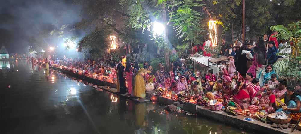 छठ पूजन समिति के अध्यक्ष श्री रमेश शर्मा ने बताया कि छठ महापर्व का मंगलवार को आखिरी दिन था। 4 दिन का ये महापर्व 25 अक्टूबर को नहाय खाय से शुरू हुआ था। आज उगते सूरज को 'ऊषा अर्घ्य' के साथ समापन हो गया। सुबह 3 बजे से व्रती महिलाओं ने पवित्र बेदी के समक्ष बास की टोकनी में जिसे कोसी कहा जाता है। कोसी में मौसमी फल,ठेकुआ,गुड,आदि लेकर पुरुष वर्ग अपने सर पर उठा कर अपने अपने घरों से पैदल बाजे गाजे के साथ छठ घाट में पहुंचे। घने बादलों में सूर्य देव के दर्शन के लिए सभी बहुत उत्साहित थे। छठ घाट पर आए कलाकारों के द्वारा धार्मिक गीतों की सुंदर प्रस्तुति से सब का मन झूम उठा।