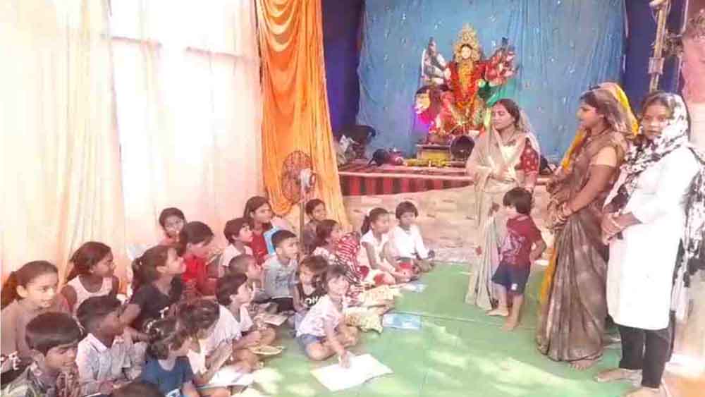 मिनी बस्ती के शिव मंदिर परिसर में बीते 3 सालों से महिलाओं की समिति दुर्गा प्रतिमा की स्थापना करती आ रही है. नवरात्र के दौरान पूरे 9 दिन समिति के सदस्य स्थानीय बस्ती के बच्चों को पढ़ाते-लिखाते नजर आते हैं. साथ ही उनके घरों में संपर्क करके शिक्षा के लिए बच्चों के साथ-साथ परिजनों को जागरूक कर रहे हैं. नशे की गिरफ्त में जा रहे युवाओं को जागरूक करने के साथ नशे से दूर रहने की प्रेरणा भी दे रहे हैं. साथ ही समिति की महिलाएं इलाके के गरीब बच्चों को कापी किताब और शिक्षा में जरूरी अन्य सामग्री का वितरण भी करती हैं, जिससे बच्चों को पढ़ाई-लिखाई करने में कोई असुविधा न हो.