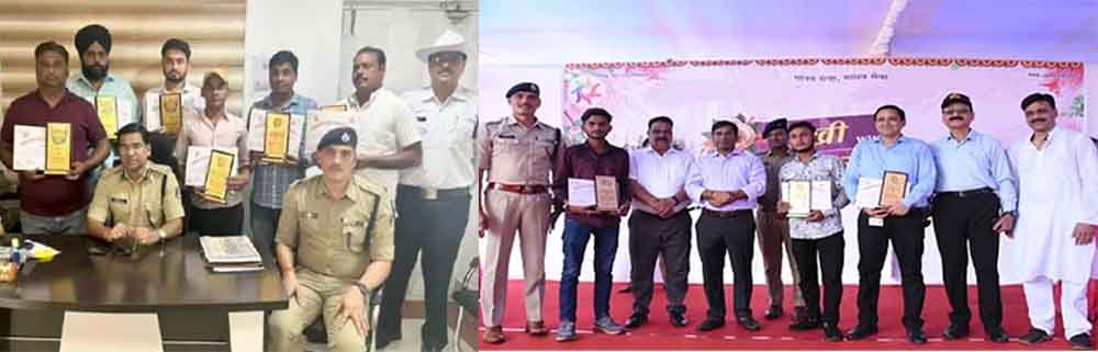 छत्तीसगढ़ की राजधानी रायपुर में सड़क दुर्घटना में घायल हुए लोगों की जान बचाने वाले नेक इंसानों को एसएसपी संतोष कुमार सिंह ने सम्मानित किया है। साथ ही उन्होंने लोगों से घायलों की मदद करने की अपील की है। रायपुर के अंतर्गत राष्ट्रीय राजमार्ग, राजकीय राजमार्ग और अन्य मार्गों में घटित सड़क दुर्घटनाओं में आगे बढ़कर घायलों की जान बचाने वाले नेक इंसानों को एसएसपी ने प्रशस्ति पत्र और शिल्ड प्रदान कर सम्मानित किया है।