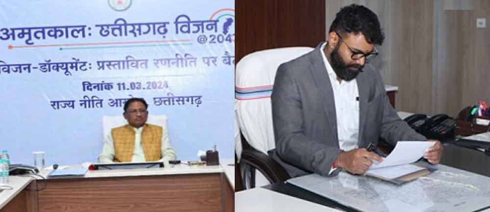 कलेक्टर ने कहा कि अमृतकाल छत्तीसगढ़ विजन@ 2047 के डाक्यूमेंट तैयार करते समय 5 साल (लघु वर्ष), 10 साल (मध्यम वर्ष) एवं 25 सालों ( दीर्घ वर्ष ) के लक्ष्यों को ध्यान रखते हुए एक्शन प्वांइट का चिन्हांकन करना है। इसके लिए उन्होंने कहा कि जिले में उपलब्ध संसाधनों का गहन निरीक्षण करते हुए तथा इसके समक्ष आने वाले चुनौतियों को मद्देनजर रखते हुए विजन तैयार करने का कार्य करें। बैठक में जिला पंचायत सीईओ श्रीमती कमलेश नंदिनी साहू सहित विभिन्न विभागों के अधिकारी एवं कर्मचारी उपस्थित थे। आयोजित बैठक में स्वस्थ छत्तीसगढ़, सुखी छत्तीसगढ़ के तहत सार्वभौमिक, किफायती, सभी के लिए स्वास्थ्य सेवा, युवाओं, आदिवासियों और वरिष्ठ नागरिकों पर ध्यान देने के साथ समावेशी स्वास्थ्य सेवा, रोग प्रोफाईल के विकास के लिए स्वास्थ्य सेवा का विकास, पहुंच व गुणवत्ता एवं सेवा में सुधार के लिए डिजिटल का लाभ उठाना, बेहतर बुनियादी ढांचा और अच्छी तरह से प्रशिक्षित कार्य बल, नवाचारी एवं प्रशिक्षित मानव संसाधन के अंतर्गत सभी के लिए परिणामोन्मुख मूलभूत शिक्षा, उच्च शिक्षा व नए युग के विषयों और उद्यमिता पर ध्यान, उद्योग-प्रासंगिक व उच्च मांग वाला कौशल विकास, गुणवत्तापूर्ण शिक्षा के माध्यम से आदिवासियों के बीच अंतर को पाटना, सीखने के परिणामों को समान रूप से बेहतर बनाने के लिए डिजिटल का लाभ उठाना, बेहतर बुनियादी ढांचा और अच्छी तरह से प्रशिक्षित कार्यबल, नवीकरणीय ऊर्जा, कार्बन और ऊर्जा उत्सर्जन में कमी, कला और संस्कृति की नई पहचान एवं सुपरफूड्स शक्ति के संबंध में चर्चा की गई। उद्योग की नई परिभाषा अंतर्गत वैश्विक उत्पादों के लिए प्राकृतिक संसाधन, कपड़ा एवं फार्मा विनिर्माण में क्रांति लाना, एक विश्वस्तरीय पारिस्थितिकी तंत्र का निर्माण, स्थानीय एमएसएमई और ग्रामीण उद्योगों की सशक्त बनाना एवं हरित विनिर्माण में अग्रणी, प्राकृतिक औषधालय अंतर्गत वैश्विक मूल्य प्रस्तावों के साथ छत्तीसगढ़ प्राकृतिक ब्रांड, आदिवासी नेतृत्व वाला विकास, वैश्विक आयुष केंद्र एवं हर्बल कल्याण पर्यटन और प्रदर्शनी, स्थानीय उत्पाद व वैश्विक पहचान अंतर्गत छत्तीसगढ़ के स्थानीय रूप से उत्पादित एमएफपी के लिए विश्व स्तर पर प्रतिष्ठित ब्रांड, वैश्विक व्यापार को सुविधाजनक बनाना व निर्यात राजस्व बढ़ाना, क्षमता निर्माण और सहकारी समितियों के माध्यम से आदिवासियों को सशक्त बनाना, अत्याधुनिक प्रसंस्करण इकाइयां और मूल्यवर्धन तकनीके, टिकाऊ प्रबंधन, आईटी का नया घर अंतर्गत विश्व स्तरीय आईटी व आईटीईएस औद्योगिक बुनियादी ढांचा, गुणवत्तापूर्ण आईटी व आईटीईएस जनशक्ति प्रदान करने के लिए कौशल पारिस्थितिकी तंत्र, निवेश आकर्षण एवं निर्यात प्रोत्साहन, अर्धचाल