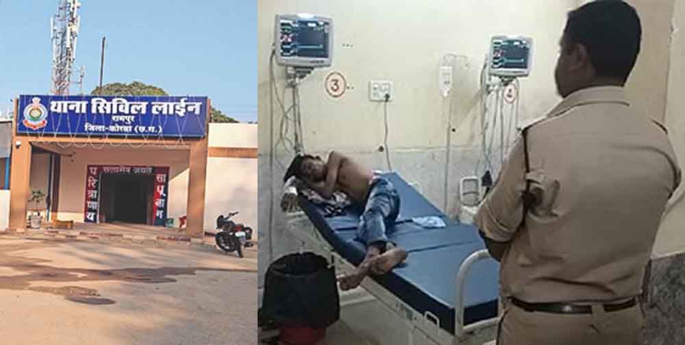 कोरबा के सिविल लाइन थाना पुलिस चोरी के मामले में 20 वर्षीय रोहित राजपूत संजय नगर निवासी को लेकर आई हुई थी, जहां उससे पूछताछ कर ही रही थी। इस दौरान बाथरूम जाने के बहाने थाने के बाथरूम के अंदर रखे फिनायल को पी गया। जब काफी समय बाद बाहर निकाला तो घटनाक्रम की जानकारी हुई। आरोपी के मुंह से झाग निकलने लगा। साथ ही आवाज लड़खड़ाने लगी।