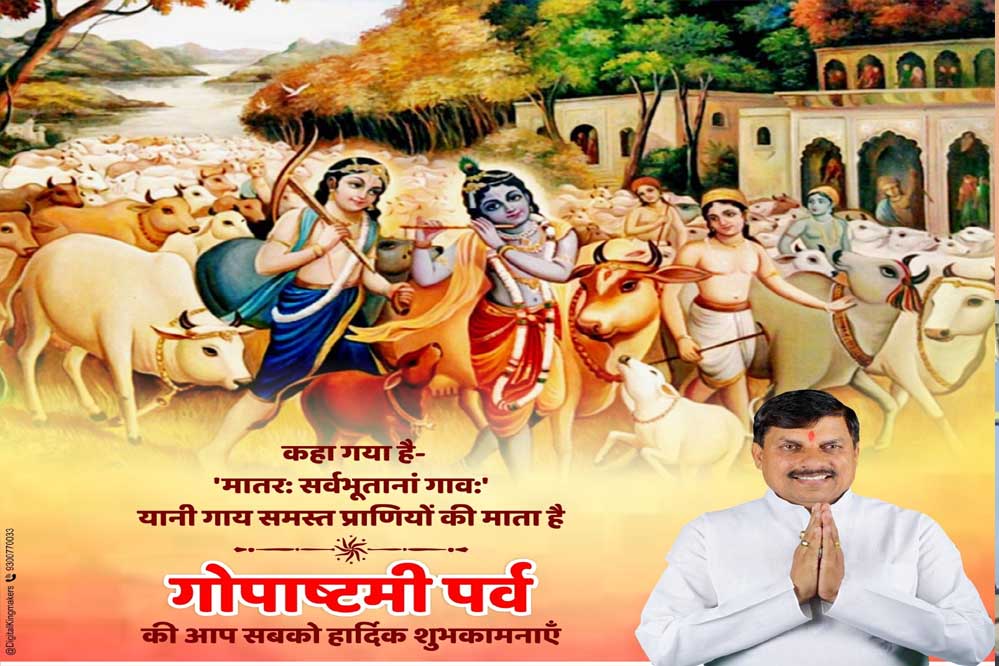 मुख्यमंत्री डॉ. मोहन यादव ने संस्कृति एवं अध्यात्म की प्रतीक गौमाता की आराधना के पावन पर्व गोपाष्टमी की मंगलकामना दी है। मुख्यमंत्री डॉ.यादव ने जगत का कल्याण करने वाली गौमाता से विश्वमांगल्य की प्रार्थना कर सभी के जीवन में सुख-समृद्धि एवं वैभव की कामना की है। मुख्यमंत्री डॉ. यादव ने कहा कि प्रदेश सरकार निरंतर गौमाता की सेवा एवं गौ-वंश के संरक्षण और संवर्धन के लिए कार्य कर रही है।