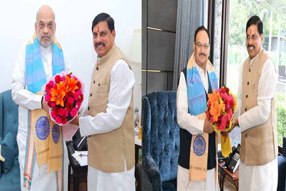 मुख्यमंत्री डॉ. मोहन यादव ने शुक्रवार को दिल्ली में केंद्रीय गृह और सहकारिता मंत्री अमित शाह और केंद्रीय स्वास्थ्य और परिवार कल्याण तथा रसायन और उर्वरक मंत्री जगत प्रकाश नड्डा से उनके निवास स्थलों में सौजन्य भेंट की। मुख्यमंत्री डॉ. यादव ने प्रदेश में पिछले छह महीनों में संपन्न हुई विकास और जनकल्याण से संबंधित विभिन्न गतिविधियों से दोनों केंद्रीय मंत्रियों को अवगत कराया। मुख्यमंत्री डॉ. यादव ने केंद्रीय मंत्रियों को रीजनल इंडस्ट्री कॉन्क्लेव पर केंद्रित पुस्तिका की प्रतियां प्रदान की।