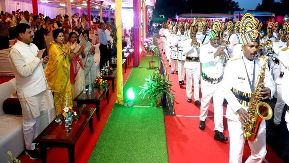 डॉ यादव ने कल रात स्थानीय मोतीलाल नेहरू पुलिस स्टेडियम में 'स्वर मेघ' कार्यक्रम के अंतर्गत मध्यप्रदेश पुलिस बैंड के संगीतमय कार्यक्रम का श्रवण किया। नवगठित पुलिस बैंड ने संगीत मय धुनों का वादन कर श्रोताओं को मंत्रमुग्ध कर दिया। मुख्यमंत्री ने पुलिस बल के सभी सदस्यों को उत्कृष्ट प्रदर्शन के लिए बधाई दी और उनके हुनर की सराहना की।