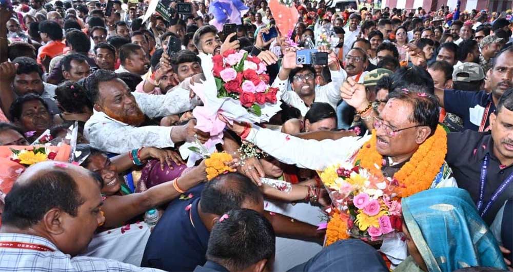 अपनी आठ दिन के जापान और दक्षिण कोरिया के विदेश दौरे के बाद आज मुख्यमंत्री विष्णु देव साय वापस रायपुर लौटे हैं। साय के वापस लौटने पर आज एयरपोर्ट पर उनका भव्य स्वागत किया गया। छत्तीसगढ़ के पारंपरिक कर्मा और पंथी नृत्यों से पूरा एयरपोर्ट परिसर लगभग एक घंटे तक सराबोर रहा। लोगों की बड़ी संख्या में मौजूदगी ने मुख्यमंत्री साय की लोकप्रियता और उनके विदेश दौरे की सफलता को स्वयं ही बयां कर दिया।