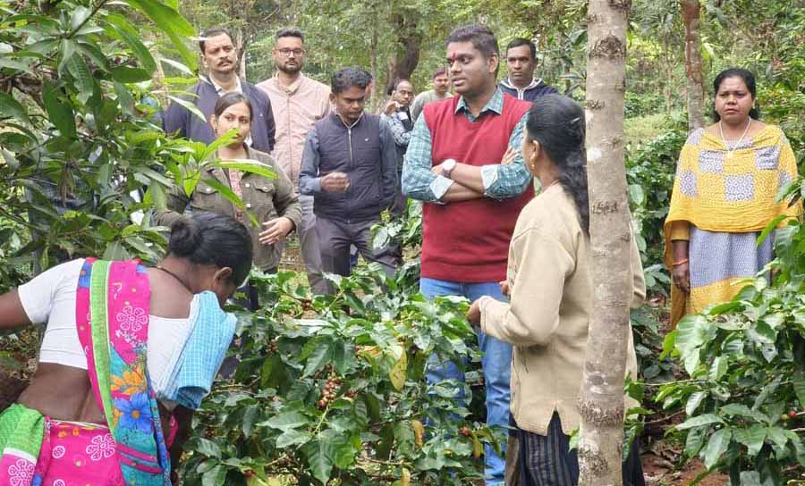 उन्होंने कॉफी उत्पादन के लिए ग्राम में बनी समिति का एसडीएम और जनपद सीईओ की उपस्थिति में बैठक करवाकर समिति में जागरूक किसानों को रखकर पुर्नगठित करने के निर्देश दिए। साथ ही किसानों को प्लांटेशन क्षेत्र की सफाई करवाने और कॉफी के पौधों का संरक्षण करने में सहयोग करने कहा। उन्होंने कहा कि जमीन आपका है, कॉफी का फसल होने पर लाभ भी आपको ही होगा। ग्रामीणों से प्लांटेशन की आवश्यकताओं के सम्बन्ध में भी चर्चा किए।