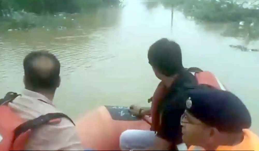 लगातार बारिश से बाढ़ जैसे हालात, कलेक्टर ने नाव से किया मदनपुरा का निरीक्षण