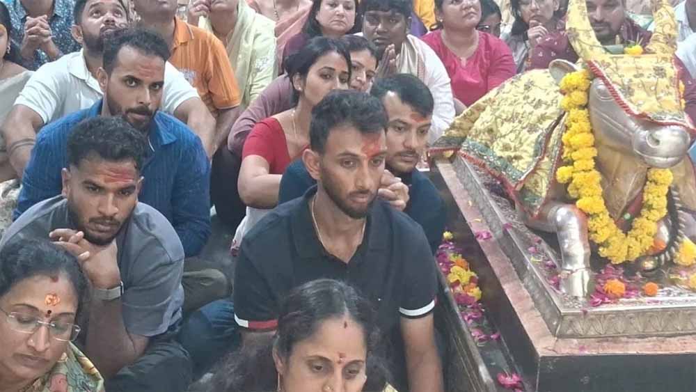 ज्योतिर्लिंग महाकाल मंदिर में बुधवार तड़के भारतीय क्रिकेट टीम के सदस्यों ने भगवान महाकाल के दर्शन किए। भारतीय क्रिकेट टीम से बाहर चल रहे मयंक अग्रवाल और तेज गेंदबाज प्रसिद्ध कृष्णा, कर्नाटक के व्याशक विजय कुमार बाबा महाकाल की नगरी पहुंचे। उन्होंने भस्म आरती में भाग लिया और पूजा-अर्चना कर बाबा महाकाल का आशीर्वाद लिया।