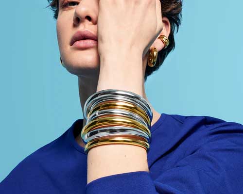 आपके लुक को सिर्फ स्टाइलिश आउटफिट ही नहीं, बल्कि सही एक्सेसरीज भी खास बनाती हैं। मेकअप, हेयर स्टाइल, इयररिंग्स, नेकलेस के साथ-साथ बैंगल्स और ब्रेसलेट भी आपके लुक को निखारते हैं। आजकल के ट्रेंड्स में गोल्डन कफ बैंगल्स बहुत लोकप्रिय हैं।