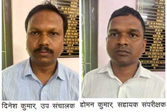 रिटायर कर्मचारी से 6 हजार रुपये रिश्वत लेते हुए एसीबी टीम ने रंगे हाथों उप संचालक और सहायक संपरीक्षक को गिरफ्तार किया। बताया जाता हैं कि भिलाई में देवव्रत देवांगन निगम सचिव के पद पर नगर पालिक निगम रिसाली भिलाई में पदस्थ थे। उन्होंने एसीबी रायपुर के कार्यालय में शिकायत की थी। देवांगन सेवानिवृत्त होने के पश्चात् भी उसका पदोन्नत पद पर वेतन निर्धारण / सत्यापन उप-संचालक, राज्य संपरीक्षा कार्यालय, दुर्ग में लंबित है। इस वजह से उनका पेन्शन एवं अन्य देयताएं नहीं मिल पा रही थी।