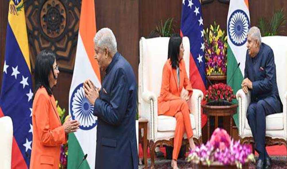 उप राष्ट्रपति जगदीप धनखड़ ने शुक्रवार को वेनेजुएला की उप राष्ट्रपति डेल्सी रोड्रिगुऐज के साथ एक बैठक की और दोनों देशों के आपसी मुद्दों पर विचार विमर्श किया।