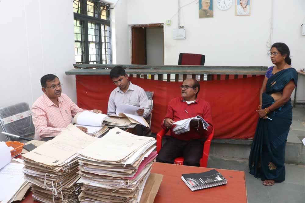 कमिश्नर शहडोल संभाग श्री बीएस जामोद ने आज अनूपपुर जिले के जैतहरी तहसील में एसडीएम, तहसीलदार और नायब तहसीलदारों के राजस्व न्यायालयो का आकस्मिक निरीक्षण किया। निरीक्षण के दौरान कमिश्नर ने राजस्व न्यायालय तहसीलदार जैतहरी के न्यायालय 2021,2022, 2023 में दर्ज राजस्व प्रकरण बटवारा नामांतरण, सीमांकन के प्रकरणों का निराकरण नहीं होने पर कड़ी नाराजगी व्यक्त की। कमिश्नर ने राजस्व न्यायालय में नामांतरण, नक्शा तरमीम के प्रकरणों की बड़ी संख्या पर भी कड़ी नाराजगी व्यक्ति की।