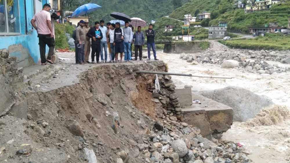 साथ ही बूढ़ाकेदार-पिंसवाड़ मोटर मार्ग का दस मीटर हिस्सा बह गया है। वहीं, एक पोकलेन मशीन भी नदी की तेज धारा में फंस कर क्षतिग्रस्त हो गयी है। मौके पर पहुंचे नायब तहसीलदार ने नुकसान का जायजा लिया। नदी में उफान आने से मरम्मत के कार्य भी प्रभावित हो गए हैं।