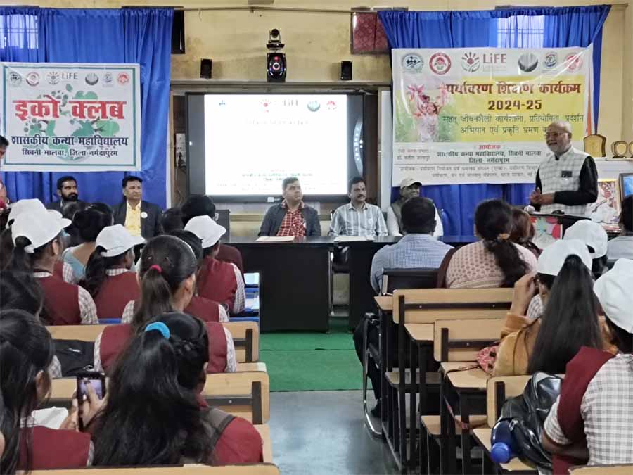 शासकीय कन्या महाविद्यालय के इको क्लब द्वारा "सतत जीवन शैली: जल संरक्षण एवं प्रबंधन" विषय पर एक दिवसीय कार्यशाला का आयोजन श्री प्रेमशंकर वर्मा जी विधायक सिवनी मालवा के विशिष्ट आतिथ्य में किया गया। उन्होंने अपने उद्बोधन में जल संरक्षण को जीवन का अनिवार्य हिस्सा बताते हुए कहा कि "प्राकृतिक संसाधनों का सही उपयोग और प्रबंधन ही हमारे उज्ज्वल भविष्य की कुंजी है। जल बचाना केवल एक जिम्मेदारी नहीं, बल्कि एक आवश्यक आदत होनी चाहिए। हमें जल की महत्ता को समझकर इसे बचाने के लिए हर स्तर पर प्रयास करना चाहिए। साथ ही उन्होंने महाविद्यालय में अध्ययनरत सभी छात्राओं की उपस्थिति एवं सहभागिता की आवश्यकता पर बल दिया। प्राचार्य डॉ. उमेश कुमार धुर्वे ने समस्त अतिथियों का स्वागत किया एवं अपने उद्घाटन भाषण में कहा कि जल जीवन का आधार है और इसके बिना किसी भी जीव का अस्तित्व संभव नहीं है। जल संरक्षण की दिशा में सतत प्रयास करना हमारा नैतिक और सामाजिक दायित्व है।