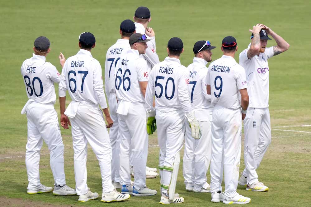 इंग्लैंड की प्लेइंग इलेवन (मैनचेस्टर टेस्ट): ज़ैक क्रॉली, बेन डकेट, ओली पोप, जो रूट, हैरी ब्रुक, बेन स्टोक्स (कप्तान), जैमी स्मिथ (विकेटकीपर), लियाम डॉसन, क्रिस वोक्स, ब्रायडन कार्स, जोफ्रा आर्चर.