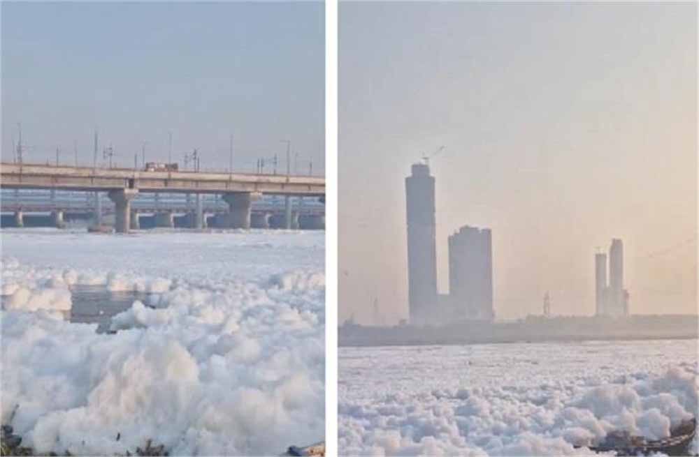 विशेषज्ञों ने जताई स्वास्थ्य जोखिम की चिंता- दिल्ली में यमुना नदी में सफेद झाग की मोटी परत देखने को मिली