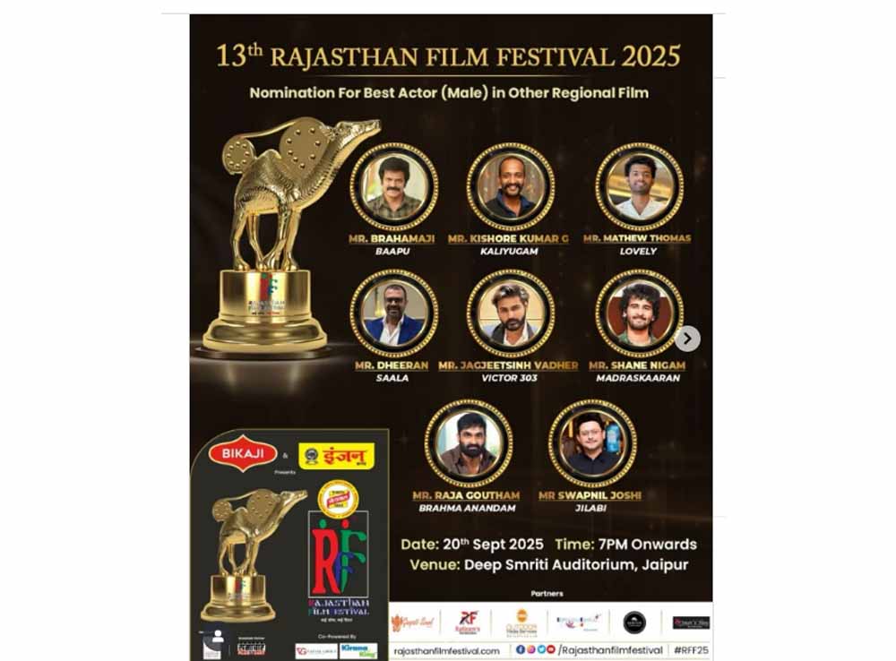 जयपुर एक बार फिर सिनेमा प्रेमियों के लिए आकर्षण का केंद्र बनने जा रहा है। 20 सितंबर को मानसरोवर स्थित दीप स्मृति ऑडिटोरियम में राजस्थान फिल्म फेस्टिवल (आरएफएफ) का 13वां संस्करण आयोजित किया जाएगा। इस बार आयोजन कई मायनों में खास होगा क्योंकि इसकी मेजबानी बॉलीवुड के जाने-माने अभिनेता चंकी पांडे और राजस्थान के लोकप्रिय एक्टर सुमित व्यास करेंगे। इनके साथ बॉलीवुड अभिनेत्री डेजी शाह भी होस्टिंग टीम का हिस्सा होंगी।