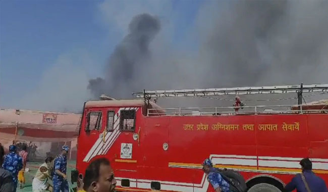 महाकुंभ में मेला क्षेत्र में फिर लगी आग: कई पंडाल जले, दमकल विभाग की गाड़ियां मौके पर