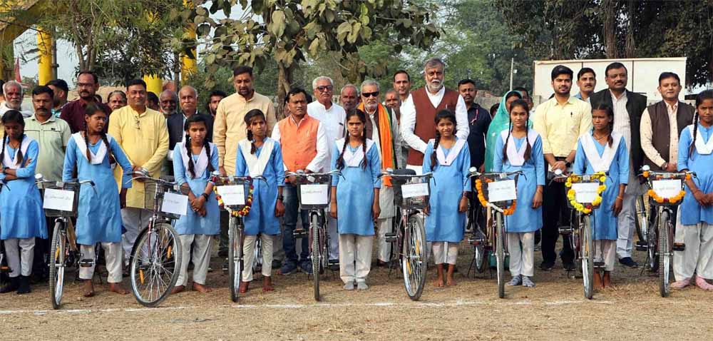 साईकिल वितरण योजना के अंतर्गत नरसिंहपुर जिले के करेली विकासखंड के शासकीय उच्चतर माध्यमिक विद्यालय उमरिया में नि:शुल्क साईकिल वितरण कार्यक्रम पंचायत एवं ग्रामीण विकास एवं श्रम मंत्री श्री प्रहलाद सिंह पटेल की मौजूदगी में हुआ। उन्होंने 29 छात्र एवं 31 छात्राओं को नि:शुल्क साईकिल प्रदान की।