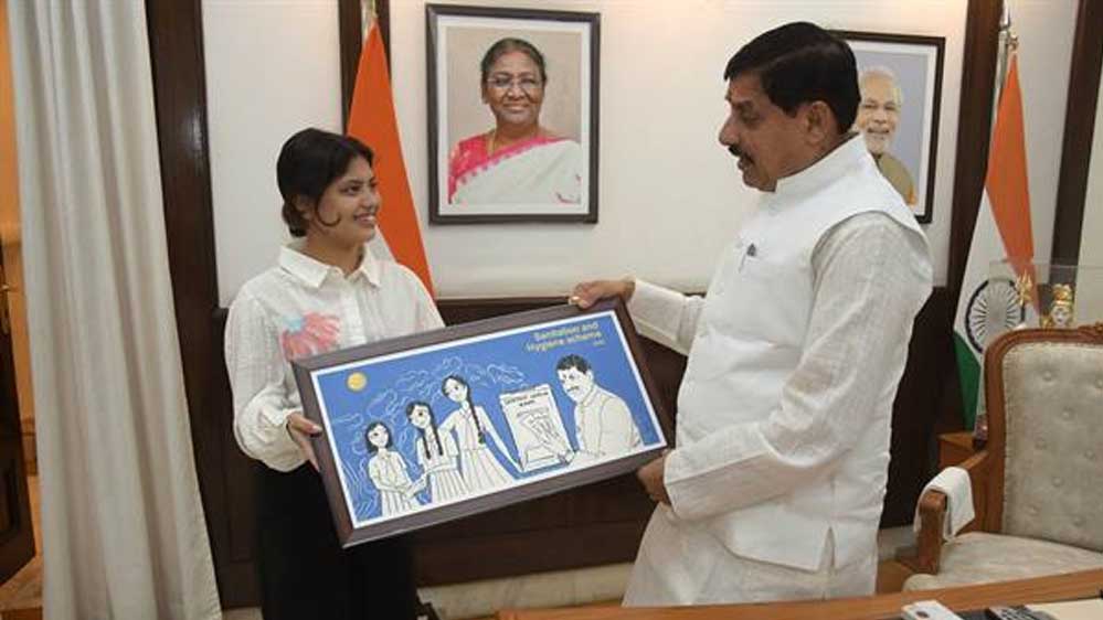 मुख्यमंत्री डॉ. मोहन यादव को यूनिसेफ इंडिया यूथ कंटेंट क्रिएटर गौरंगी शर्मा ने निवास कार्यालय में स्वयं के द्वारा बनाई हुई पेंटिंग भेंट की। यह पेंटिंग मुख्यमंत्री डॉ. यादव द्वारा किशोरी बालिकाओं में माहवारी स्वास्थ्य व स्वच्छता प्रबंधन के लिए की जा रही पहल पर केंद्रित है। उल्लेखनीय है कि मुख्यमंत्री डॉ. यादव ने सेनिटेशन हाईजीन अन्तर्गत माहवारी प्रबंधन में सुविधा व सहायता के लिए हाल ही में प्रदेश की 19 लाख स्कूली छात्राओं के खातों में 57 करोड़ 58 लाख रुपए अंतरित किए थे।
