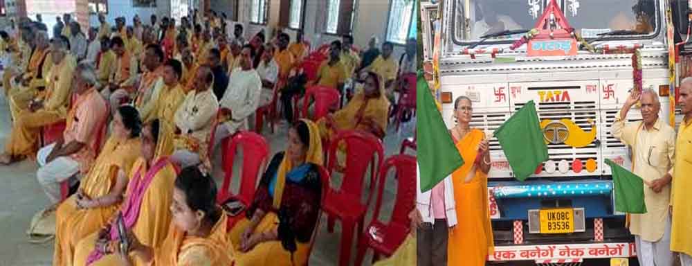 शांतिकुंज प्रतिनिधि बल्लूराम प्रजापत ने जानकारी देते हुए बताया कि हरिद्वार में लगातार चल रहे भंडारे भोजन व्यवस्था के साथ प्राकृतिक आपदा के समय जरूरतमंद व्यक्तियों के लिए भोजन के पैकेट तैयार कर वितरण करने हेतु गायत्री परिवार दौसा से जुड़े साधकों द्वारा शांतिकुंज प्रतिनिधियों की उपस्थिति में महुवा अनाज मंडी से गणमान्य नागरिकों और शांतिकुंज हरिद्वार से जुड़े साधकों की उपस्थिति में अनाज से भरा ट्रक हरिद्वार के लिए रवाना किया गया।
