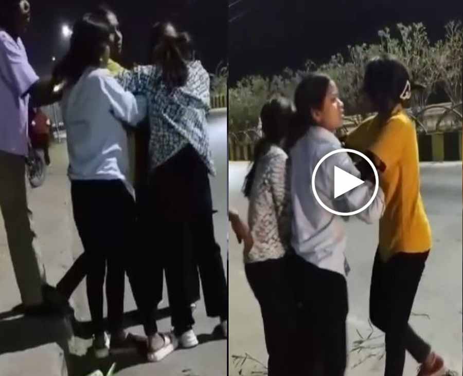 वायरल वीडियो में दिख रहा है कि दो लड़कियां आपस में जमकर मारपीट कर रही हैं। कभी कोई भारी पड़ती है तो कभी कोई। इधर, कैमरे के पीछे से कोई युवक “पुलिस आ गई… पुलिस आ गई” कहकर लड़कियों को आगाह करते हुए सुनाई पड़ रहा है। वहीं कुछ युवक मौके पर तमाशबीन बन खड़े सब देख रहे हैं। दोनों युवतियों की दोस्त बीच-बचाव के लिए आती है, लेकिन वो भी लपेटे में आ जाती है। घटना मणिपुर थाना क्षेत्र अंतर्गत रिंग रोड की बताई जा रही है।