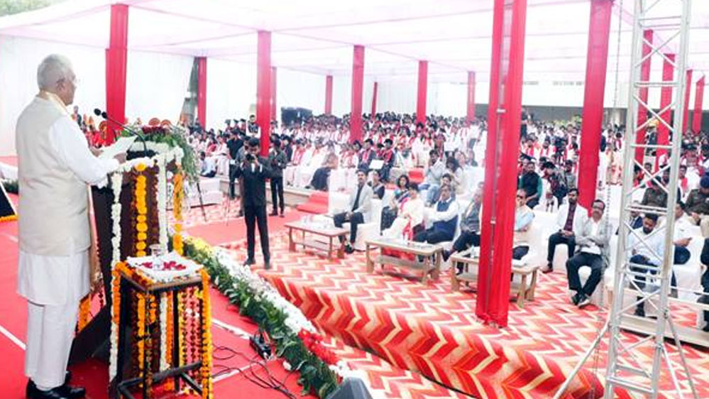 राज्यपाल पटेल ने कहा कि प्रथम दीक्षांत समारोह, विद्यार्थी और विश्वविद्यालय दोनों के लिए अत्यंत भावनात्मक और अविस्मरणीय पल होता है। नये भविष्य के निर्माण पथ पर आगे बढ़ने का महत्वपूर्ण पड़ाव होता है। उन्होंने दीक्षित विद्यार्थियों से कहा कि आप सभी विकसित भारत के अमृत प्रसंग की प्रतिनिधि पीढ़ी है। आपकी पीढ़ी सौभाग्यशाली है जिन्हें प्रधानमंत्री नरेन्द्र मोदी के द्वारा राष्ट्र निर्माण की प्रक्रिया में योगदान का ऐतिहासिक अवसर मिला है।