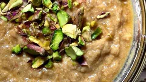 फ्रिज में इसे ठंडा होने के लिए रख दें। अखरोट की कतरन, कटे अंजीर और सूखी गुलाब की पंखुड़ियों से सजाकर सर्व करें।