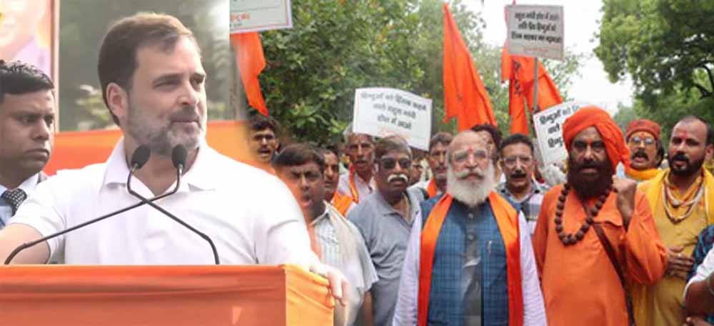 लोकसभा में सोमवार को राष्ट्रपति के अभिभाषण पर धन्यवाद प्रस्ताव पर चर्चा के दौरान कांग्रेस नेता राहुल गांधी द्वारा हिंदू समाज को लेकर दिए गए बयान पर देशभर में विरोध लगातार जारी है। संसद में विपक्ष के नेता राहुल गांधी द्वारा हिंदुओं के अपमान के विरोध में अब विश्व हिंदू परिषद के बैनर तले कई हिंदू संगठनों और साधु-संत 9 जुलाई को दिल्ली के जंतर-मंतर पर 'हिंदू शक्ति संगम' कार्यक्रम करेंगे। इससे पहले राहुल गांधी के बयान के विरोध में भाजपा युवा मोर्चा (भाजयुमो) और विभिन्न प्रदेशों के पार्टी कार्यकर्ताओं ने बुधवार को देशभर में सड़कों पर उतरकर जोरदार विरोध प्रदर्शन किया था और कांग्रेस नेता से बिना शर्त माफी मांगने की मांग की थी।