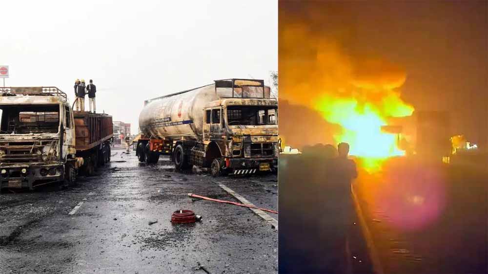हाईवे पर खौफनाक मंजर : सिलेंडर से भरे ट्रक में केमिकल टैंकर की टक्कर, धमाकों से दहला इलाका