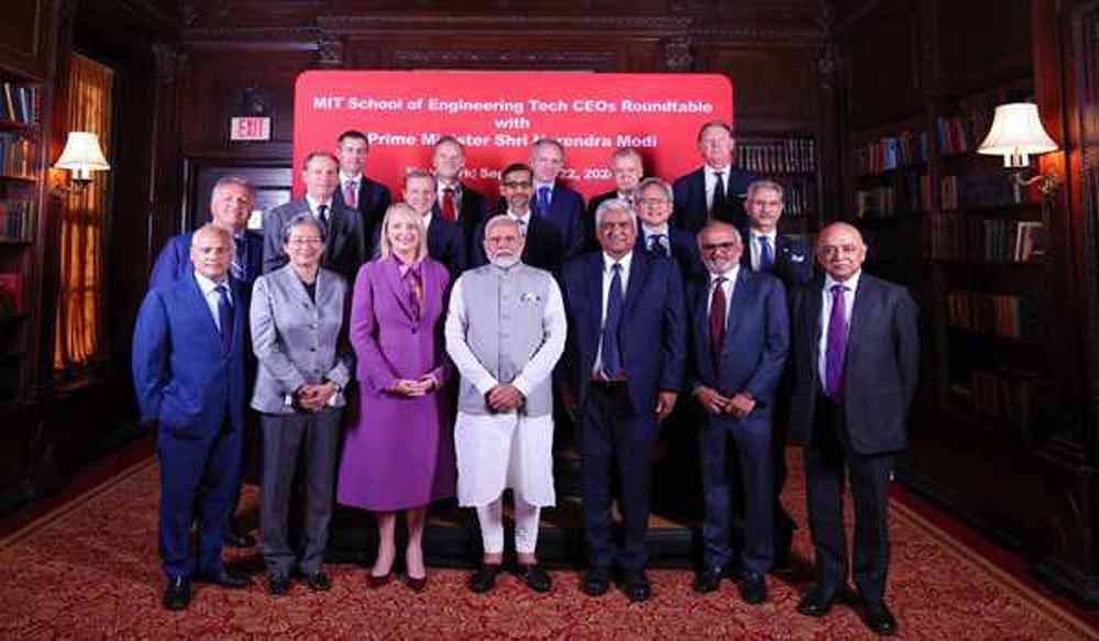 प्रधानमंत्री नरेंद्र मोदी ने न्यूयॉर्क में एक गोलमेज सम्मेलन में एडोब, एक्सेंचर, गूगल और आईबीएम समेत 15 प्रौद्योगिकी सीईओज से मुलाकात की तथा प्रौद्योगिकी एवं नवाचार से संबंधित पहलुओं पर चर्चा की। प्रधानमंत्री ने एक्स पर एक पोस्ट में कहा कि वह भारत के प्रति अपार आशावाद देखकर प्रसन्न हैं। उन्होंने पोस्ट में कहा 'न्यूयॉर्क में प्रौद्योगिकी सीईओज के साथ एक फलदायी गोलमेज सम्मेलन हुआ, जिसमें प्रौद्योगिकी, नवाचार और अन्य से संबंधित पहलुओं पर चर्चा की गई। साथ ही इस क्षेत्र में भारत द्वारा की गई प्रगति पर प्रकाश डाला गया। मैं भारत के प्रति अपार आशावाद देखकर प्रसन्न हूं।' एक बयान में कहा गया कि प्रधानमंत्री ने मैसाचुसेट्स इंस्टीट्यूट ऑफ टेक्नोलॉजी (एमआईटी), स्कूल ऑफ इंजीनियरिंग द्वारा आयोजित गोलमेज सम्मेलन में प्रौद्योगिकी उद्योग के नेताओं के साथ न्यूयॉर्क में बातचीत की। प्रौद्योगिकी-गोलमेज सम्मेलन में आर्टिफिशियल इंटेलिजेंस और क्वांटम; जैव प्रौद्योगिकी और जीवन विज्ञान; कंप्यूटिंग, आईटी और संचार; और सेमीकंडक्टर प्रौद्योगिकियों पर ध्यान केंद्रित किया गया।