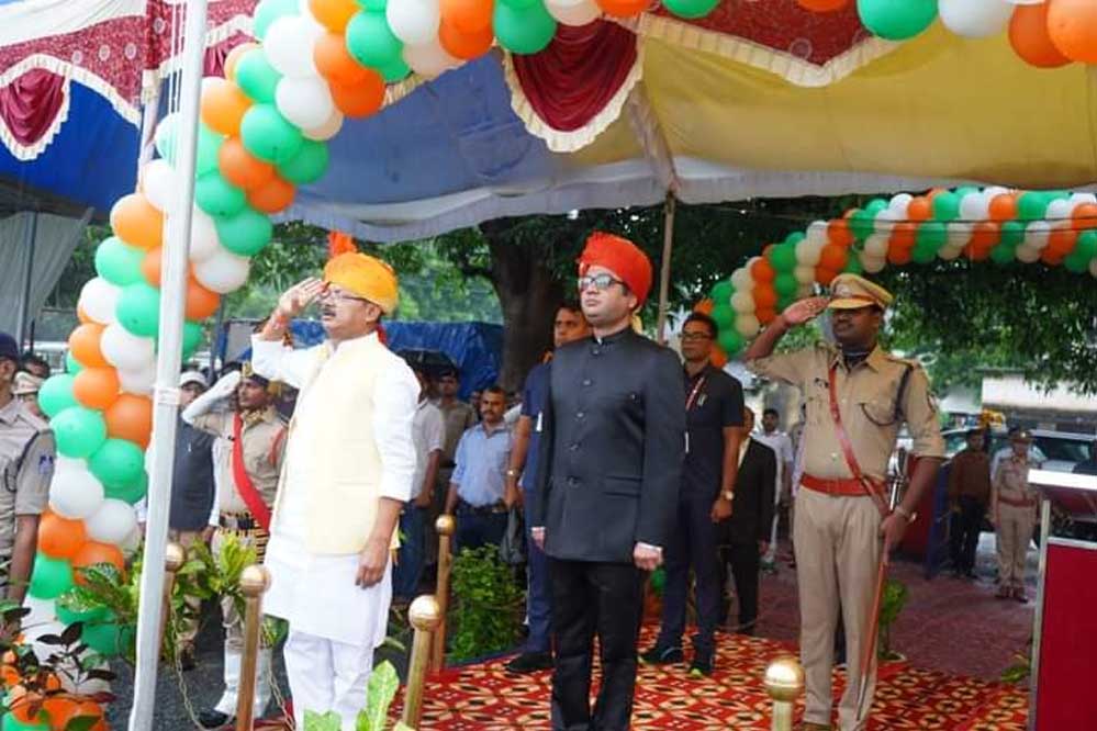 जिलास्तरीय कार्यक्रम में प्रभारी मंत्री दिलीप जायसवाल ने ध्वजारोहण कर ली परेड की सलामी