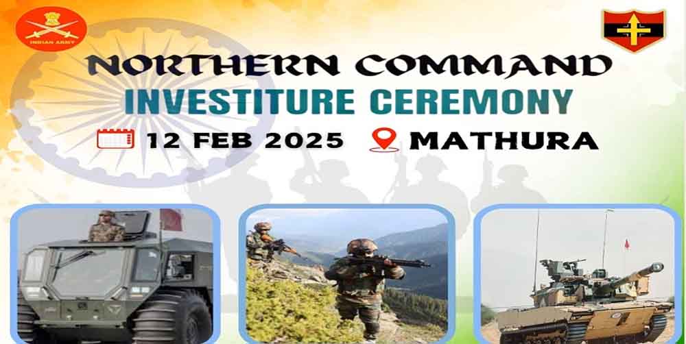 भारतीय सेना की उत्तरी कमान 12 फरवरी को उत्तर प्रदेश के मथुरा सैन्य स्टेशन में एक प्रतिष्ठित अलंकरण समारोह आयोजित करेगी, जिसमें कमान के अधिकारियों और सैनिकों को उनके कर्तव्य से परे बहादुरी के कार्यों और राष्ट्र के लिए विशिष्ट सेवा के लिए वीरता और विशिष्ट सेवा पुरस्कारों से सम्मानित किया जाएगा।